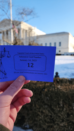 Hearing arguments in January is quite uncommon. The Justices were already in town due to the death of former President Jimmy Carter and there was an expedited hearing for the TikTok case. This caused the well-oiled machine that is the Supreme Court staff to work in order to get the Court ready for the case. The Justices scheduling an argument in January doesn’t just affect the nine Justices, it affects everyone. This includes our class who had the opportunity to stand outside the Court not once, but twice.