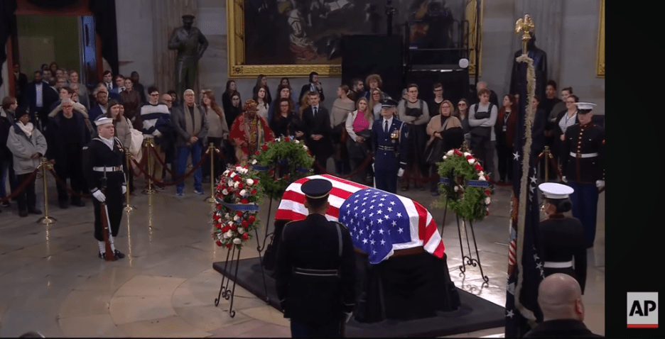 The day started with viewing former President Jimmy Carter lie in state under the Capitol Rotunda. As fitting with our overall theme, no phones were allowed once within the viewing area of the Rotunda. As a group, we viewed, paid our respects and stood in awestruck silence as Members of Congress (Rep. Tom Cole R-OK), a Supreme Court Justice (Sotomayor) and others came to pay their respect to the late President. As a group, we not only witnessed an intimate moment between members of the most elite class of Americans, but one of the last remaining moments for both common Americans and elected Representatives to come together in one room to pay their respects to a leader all can find something to admire about. We even witnessed a changing of the guard. A once in a lifetime experience that may never be matched in any of our lives, all before 10 a.m. We thank the AP for being our photographers on this somber day.