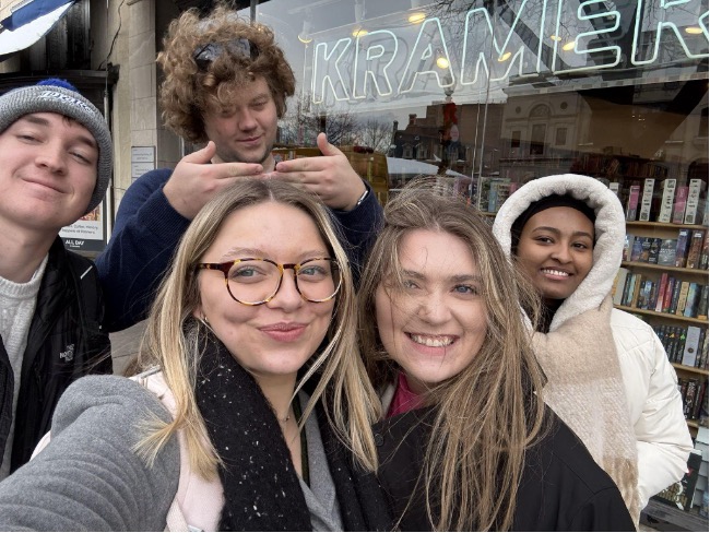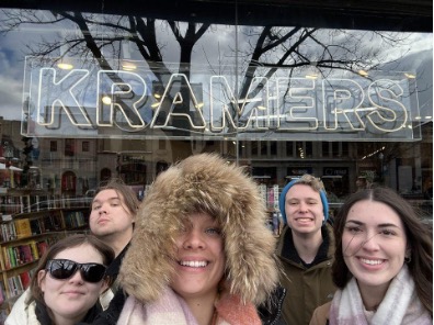 For the next stop on our search, our group got to go to a local bookstore: Kramers. There, we talked to a few employees about their experiences in the city. All three of the employees we spoke to do not live in D.C. but commute for work. One pointed out to us that “D.C. is a city of commuters.” When asked what changes they noticed in D.C. surrounding an inauguration, they said that the city is constantly busy. They have noticed how D.C. is always in motion, people are coming and going. But they enjoyed that chaos and liked having such an active place around them.