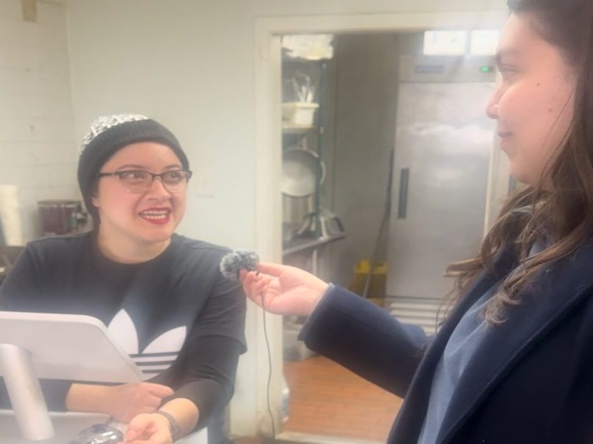 As we began the day without technology, we ran into several business owners who were doing their everyday jobs. At our first stop we grabbed lunch as well as chatted with the cashier at Bullfrog Bagels in Eastern Market. The cashier, friendly but reserved, politely declined our interview request, explaining her hesitancy to discuss the upcoming inauguration and its impact on their business.