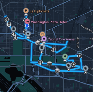The last two people we spoke to were a man and a woman waiting for an Uber on Lafayette Square. The man, who did most of the talking, had been born in D.C., at Walter Reed. He said they were in the city for work, an assertion supported by the ID badges they wore on lanyards. When we met them, they were sightseeing. The man said that he liked the city because it was “the nation’s capital” and one could find people from many different backgrounds. At the time, the White House was obscured from the north side; his companion thought this might have been because Joe Biden was not feeling well. After sharing a chuckle, we moved on.
