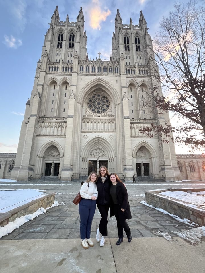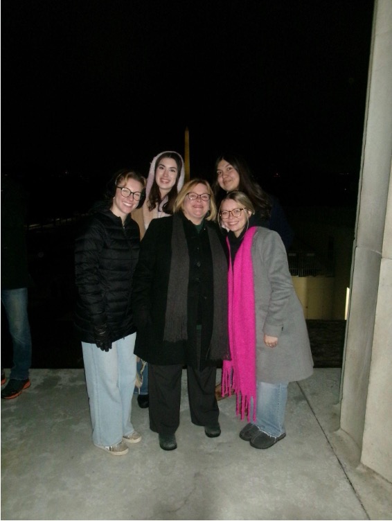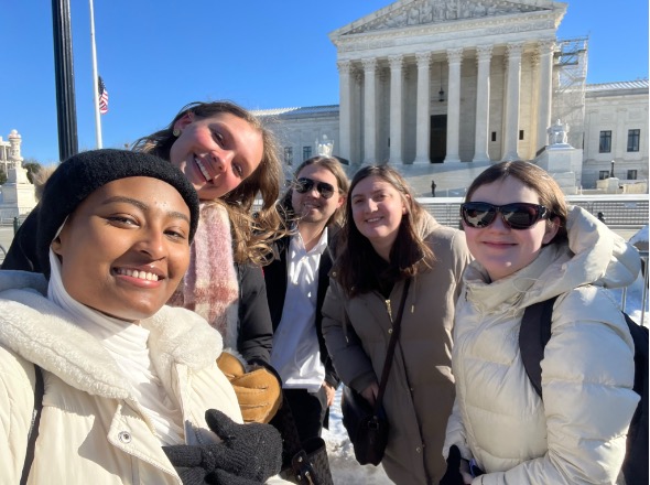 Pictured left to right: Eli Benson, Hannah Goldsmith, Professor Rachel Paine Caufield, and Fran Conner. After leaving the hotel at 6 a.m. and waiting in the cold outside of the Supreme Court for a little over two and a half hours, we finally made it inside the building. Photo courtesy of Professor Rachel Paine Caufield. Caption by Hannah Goldsmith.