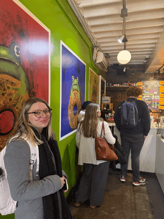 Pictured in Photo: Raya Hoppe, Chloe Gayer, Imman Yimer, and Reid Stevens. The Eastern Market neighborhood in DC offers a variety of cuisine for all three meals of the day. We ventured into Bullfrog Bagels for some bagel sandwiches in the middle of our scavenger hunt around the city! Photo and caption written by Will Blevins