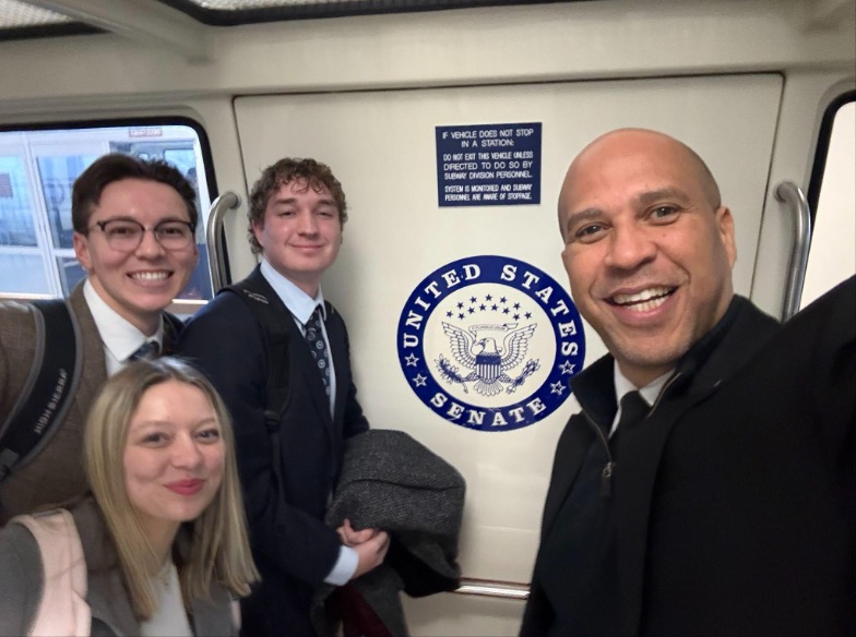 Pictured in the photo (Left to right): Raya H., Michael M., Will B., and Senator Booker. Thanks to Will Blevins and his awesome connections, we got the opportunity to meet Senator Booker! The senator welcomed us to walk with him and even go on the Capitol Subway!