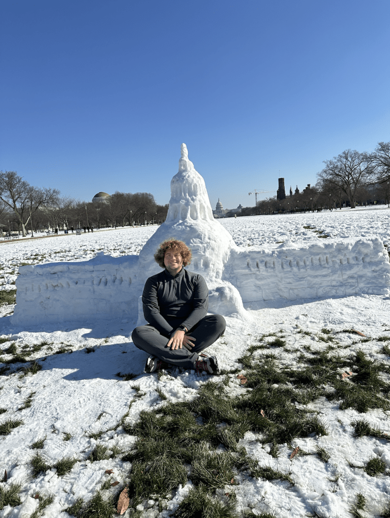 Pictured here is Reid Stevens. The unusually heavy snowfall in D.C. allowed some visitors to the National Mall to get creative, creating snow sculptures of the Capitol and Washington Monument.